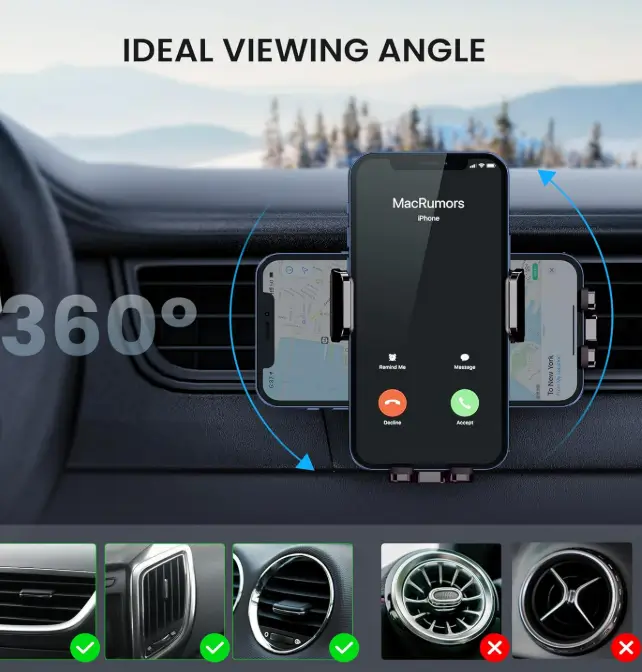 Guwez Universal Car Vent Phone Mount: 360° Swivel Holder for Smartphones, Secure Hands-Free Cradle for Easy Navigation & Calls