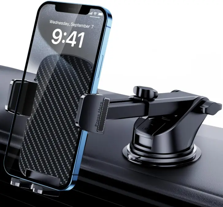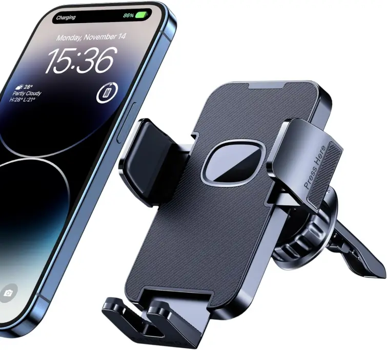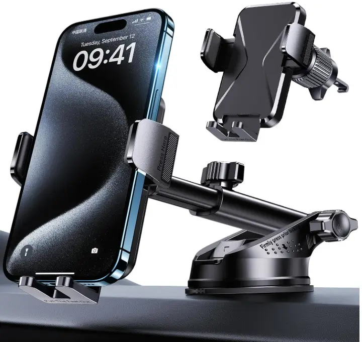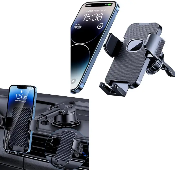 This car phone mount uses powerful suction to stay firmly attached to your dashboard or windshield, providing a stable and secure hold while driving. Its universal design is compatible with iPhones and other smartphones, even with thick protective cases, so you don’t need to remove your case. With air vent, dashboard, and windshield mounting options, it offers flexible placement and convenient hands-free use for navigation and calls